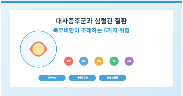복부비만은 여러 만성질환의 공통된 위험인자입니다. 특히 다음 5가지 질환과 밀접한 연관이 있습니다.