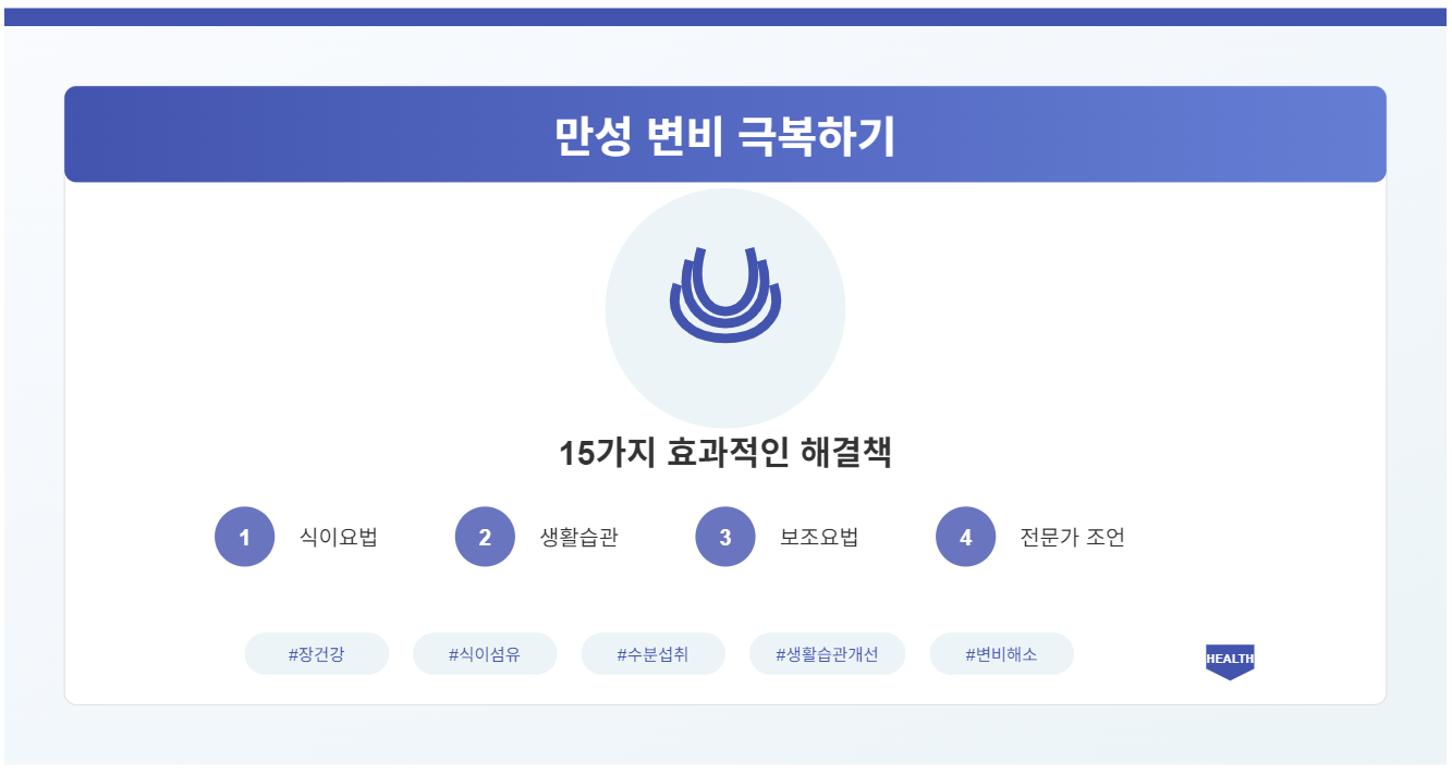 하지만 포기하지 마세요. 오늘은 의학적으로 검증된 15가지 효과적인 만성 변비 해결책을 소개합니다. 식습관 개선부터 생활습관 변화, 그리고 필요할 때 도움이 되는 보조제까지, 장기적으로 변비 문제를 해결하고 건강한 장 기능을 되찾는 방법을 알아봅시다.