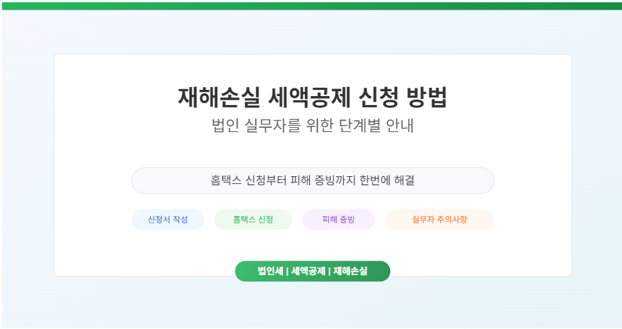 저도 실무자로 일하면서 처음 재해손실 세액공제를 신청할 때 정확한 가이드가 없어 애를 먹었습니다. 여러 번의 보완 요청과 수정 끝에 신청에 성공했는데요, 오늘은 그런 시행착오를 겪지 않도록 재해손실 세액공제 신청 방법을 단계별로 상세히 안내해 드리려고 합니다.